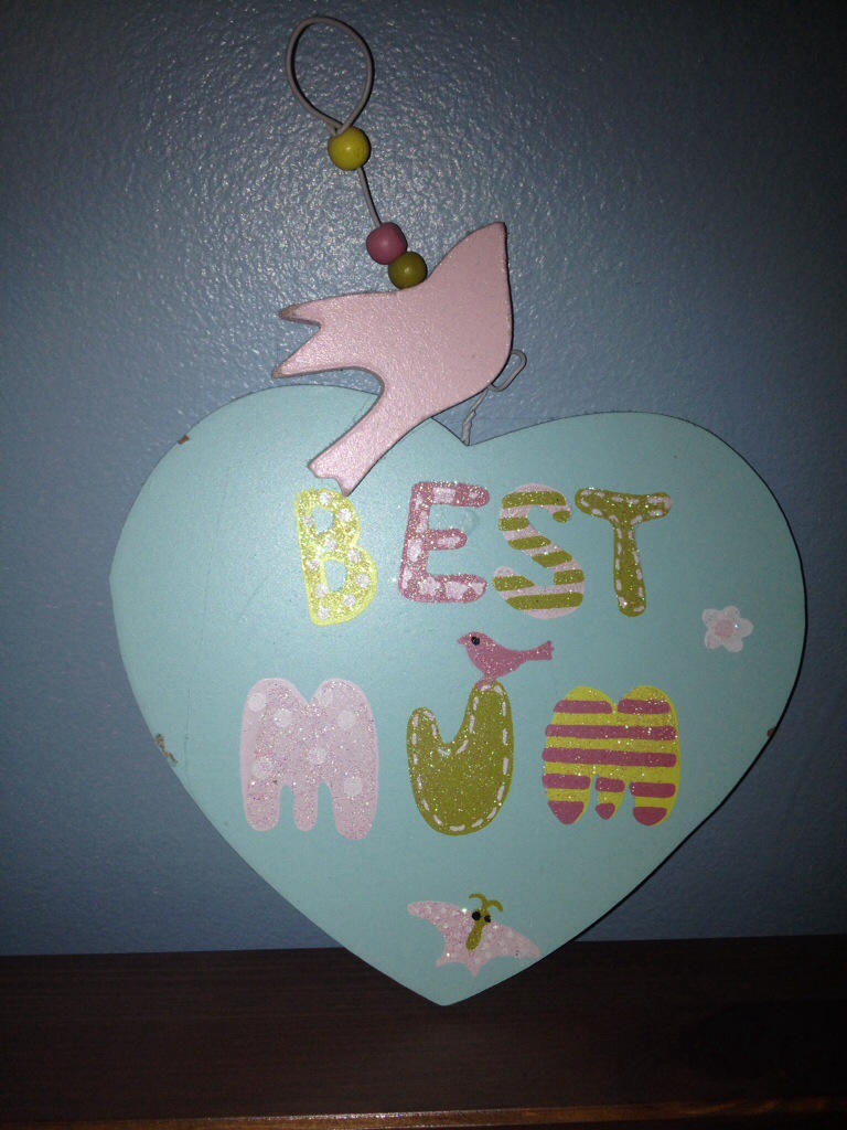 Les mamans anglaises auront ensuite le choix, entre un sunday roast à la maison, mais préparé par quelqu’un d’autre ( par Marks &Spencer quand c’est le papa, ou par leur propre mère ou leur sœur éventuellement, à charge de revanche pour le prochain christmas lunch) ou un repas en famille au restaurant. Tous les établissements proposent des menus spéciaux pour la fête des mères. C’est encore plus bondé que pour la Saint Valentin, qu’on célèbre généralement à deux, alors que pour la fête des mères les gens débarquent à plusieurs dizaines à la fois, avec le ban et l’arrière ban des cousins. Il y a aussi tout un tas d’activités diverses organisées dans les châteaux et maisons de l’English Heritage, les musées, les fermes éducatives, les mamans ayant droit à un thé gratuit ou un cupcake. Il y a des ateliers pour que les enfants fabriquent des horreurs cadeaux originaux. Bref, les petits anglais gâtent leur maman. C’est là que l’Ado et le Pré Ado se revendiquent français, et donc m’expliquent qu’ils voudraient vraiment faire quelque chose, mais ils ne peuvent pas, ce serait contre leurs racines françaises. Déjà, ils sont bien gentils de me jeter dessus donner aimablement ce pur trésor de bon goût déniché pour une livre je ne sais où. C’est sur la photo. Et ils se sont cotisés pour l’acheter. Il paraît que je devrais être contente, ça prouve leur grande entente fraternelle. Puisque c’est ça, et qu’ils parlent racines, ils n’ont qu’à aller tondre le jardin tiens!