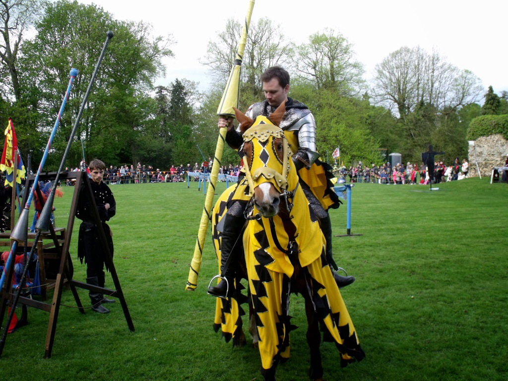 Sans vouloir faire du médievalisme à outrance, après la bataille d’Hedingham Castle, voici les joutes à cheval (les destriers donc, encore un mot que les anglais ont piqué aux français), toujours au même château. Comme c’est un grand week end férié, qu’il fait un peu frais mais qu’il ne pleut pas, et que mes tentative de jardinage sont un échec (j’en suis à mettre des plantes en plastique dans mes pots de fleurs, et même comme ça, je ne suis pas sûre qu’elles ne se calcinent pas, rien que pour me narguer) , on a sorti les enfants. On est reparti avec nos histoires de chevaliers, et les merveilleuses photos de Marichéri.