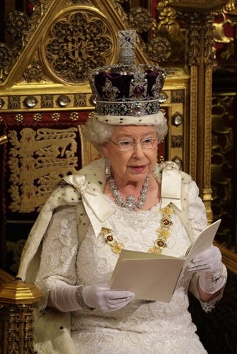 Bien sur, le cérémonial est un peu plus compliqué que ça. Par exemple, les lords, avant de début des festivités, envoient un émissaire, connu sous le nom charmant de « black rod » (le bâton noir) pour prévenir les manants de la chambre des communs (les députés élus) qu’ils peuvent se joindre à eux. La tradition veut que la porte des communs soit fermée, pour afficher leur indépendance vis à vis de la royauté. Et quand ce malheureux black rod arrive, on ne lui ouvre que pour mieux lui claquer la porte au nez. Comme Sheldon Cooper dans the big bang theory, il doit frapper trois fois avant que les députés acceptent de le suivre. J’aime beaucoup toutes ces traditions complètement désuètes mais tellement british. Cela dit, c’est la dernière partie du cérémonial qui intéresse vraiment tous les britanniques, royalistes, républicains ou autres. Parce que le Queen’s speech est en fait la déclaration de politique générale du gouvernement pour la session parlementaire qui s’ouvre. C’est là qu’on apprendra ce que nous réserve David Cameron ses ministres pour les 12 prochains mois. Et la reine doit se contenter de lire ce qu’on lui donne, pas de commentaire, d’avis personnel, rien. Tout ça pour ça…