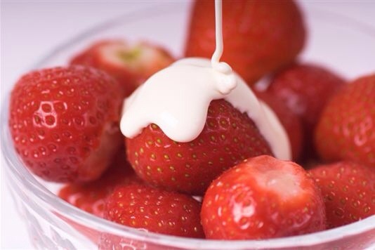 Fraises et whipping cream; un regal, si la chantilly est sucree sinon j’aime moins!