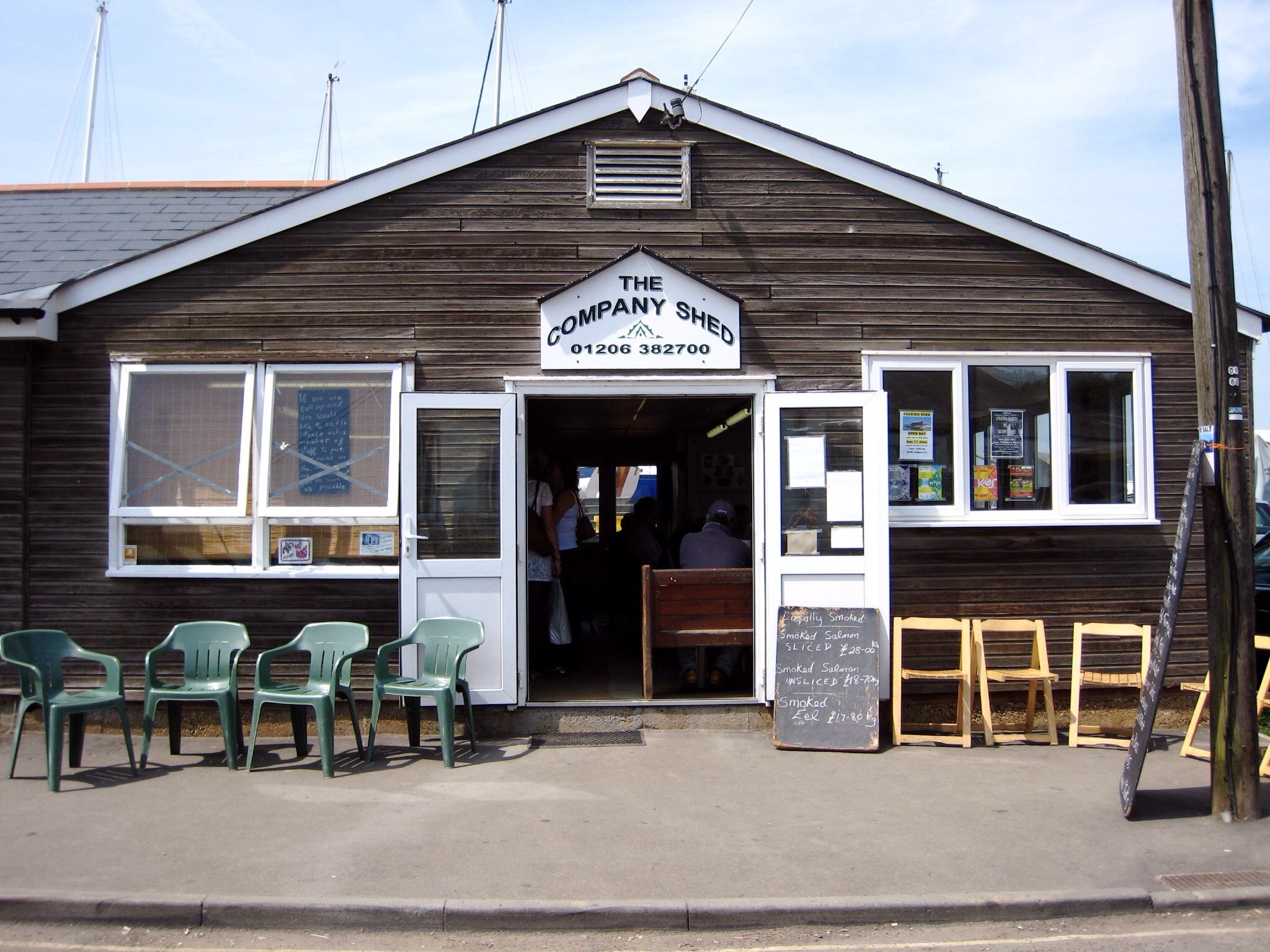 La cabane la plus célèbre, et la meilleure niveau fruits de mer, c’est le mondialement connu Company Shed. Au premier abord, on ne se doute pas que le Shed est pris d’assaut à l’heure des marées, par des gens très bien (et qui viennent de Londres exprès…je commence à faire plouc non, à répéter ça? Ça prouve que je suis parfaitement intégrée! Une vrai essexiénne). Le Company Shed est le plus miteux du port, mais vous ne pouvez pas le louper, il y a foule devant. Il faut amener son pain, son vin et son citron. Rien n’est fourni, vous vous installez sur de grandes tablées tres rustiques. On vous sert les produits bruts. Ils font l’effort de vous ouvrir les huîtres si vous demandez vraiment gentiment, sinon débrouillez- vous. Si vous préférez vous pouvez vous servir au comptoir et ramener tout ça chez vous. C’est délicieux, convivial, et donc très populaire .