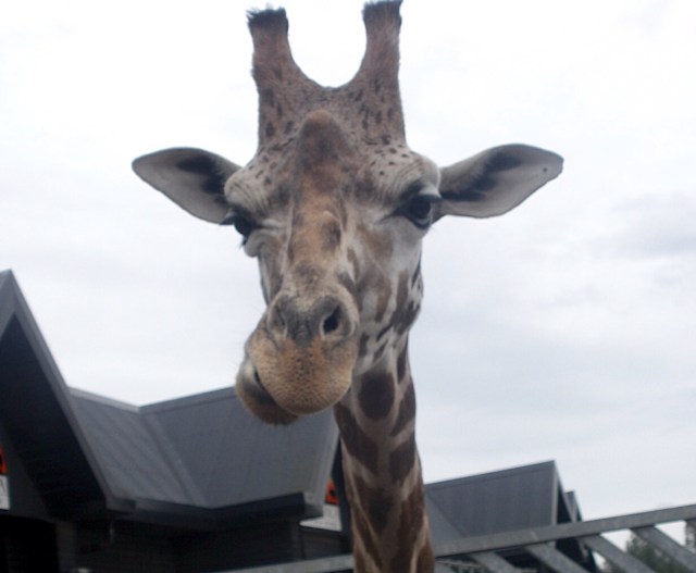 J’aurais pu choisir parmi la foultitude de portraits de vaches, ou les photos de la chatte, dans des positions abracadabrantes, une patte dans l’oreille et la tête en bas, ou encore tous les chevreaux, agneaux et autres canards…mais c’etait prévisible. Alors, voilà une des girafes (c’est peut être un monsieur girafe, je ne sais pas) du zoo de Colchester, on sent de suite qu’elle a des choses à dire, cette brave bête.