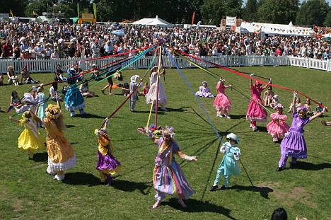 Si par hasard on n’a pas de vague monument sous la main, ou qu’il ne s’est rien passé dans son coin paumé pendant la guerre civile, on peut quand même s’amuser en été, en organisant une fête de village. C’est une sorte de garden party géante, en plus populaire avec des stands payants, voire des forains. Il y a des complétions captivantes: la plus grosse tomate, le meilleur cheese cake, le plus bel épouvantail, on s’eclate. Il y aussi des jeux, des danses folkloriques (comme sur la photo, c’est un maypole) et tout ce genre de chose.
