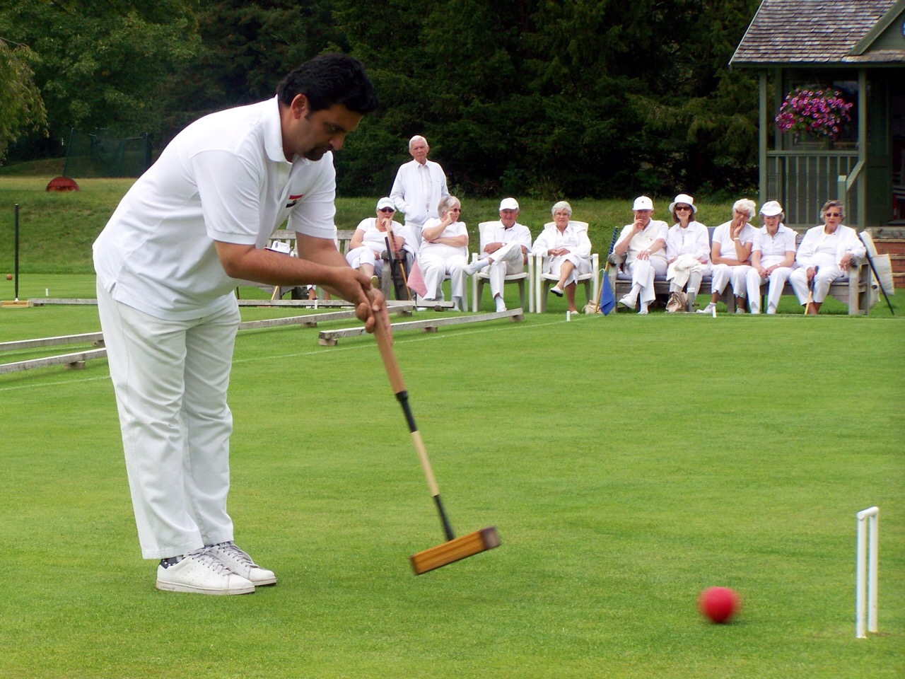 Pour éliminer les vapeurs d’alcool, c’est bien de faire du sport. L’été anglais a ses sports de reference: le tennis de Wimbledon (c’est un sport de spectateurs, quel idée de s’agiter en short avec une raquette, alors qu’on peut rester tranquillement dans les gradins pour manger des fraises et boire du pimm’s…je sens que je m’egare encore), le cricket aux règles aussi hermétiques que la durée des matchs, le croquet (si, si, il y a même un championnat) et le lawn bowling (une sorte de pétanque locale).