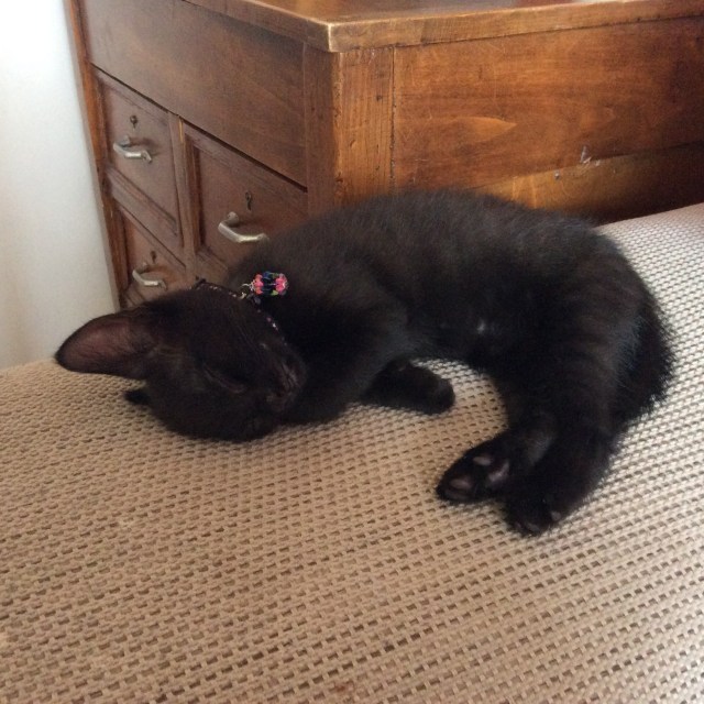 Entre l’inhabituel devenant habitude, les habitudes décalées, et le carrément habituel on s’éclate comme toujours chez toi! 🙂 La petite dernière est Mmmm (j’adore les chats noirs) et ton ciel nuageux est digne d’une aquarelle!