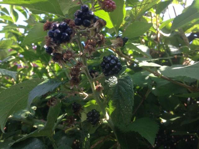 1-Je commence forcément par les mûres du jardin. On a testé en crumble, en tartelettes et en confitures, et il en reste! Les enfants se dévouent pour aller en ramasser le matin avant l’école (ils ont droit à un healthy snack, un goûter sain le matin qu’on amène ou achète sur place). Ça crée des tensions, GeekAdo profite lâchement de sa taille pour garder les meilleures pour lui.
