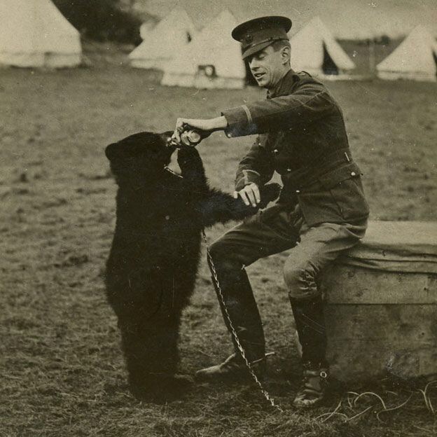 On apprend des choses fascinantes sur la BBC. Le crâne de Winnie l’ourson a été retrouvé au Royal College of Surgeons, à Londres, et va être exposé. Non, personne n’a décapité sauvagement une peluche, il s’agit d’un vrai crâne d’our. Je ne mets pas la photo, parce que c’est bientôt l’heure du repas et franchement, un crâne d’ours, c’est beaucoup moins mignon qu’une peluche, mais je vous présente Winnipeg, un ourson canadien acheté par un vétérinaire local, Harry Coleburn qui en a fait son pet, son animal de compagnie (quand je pense que je n’ai que deux chats et que Marichéri troute que ça suffit comme ça…).