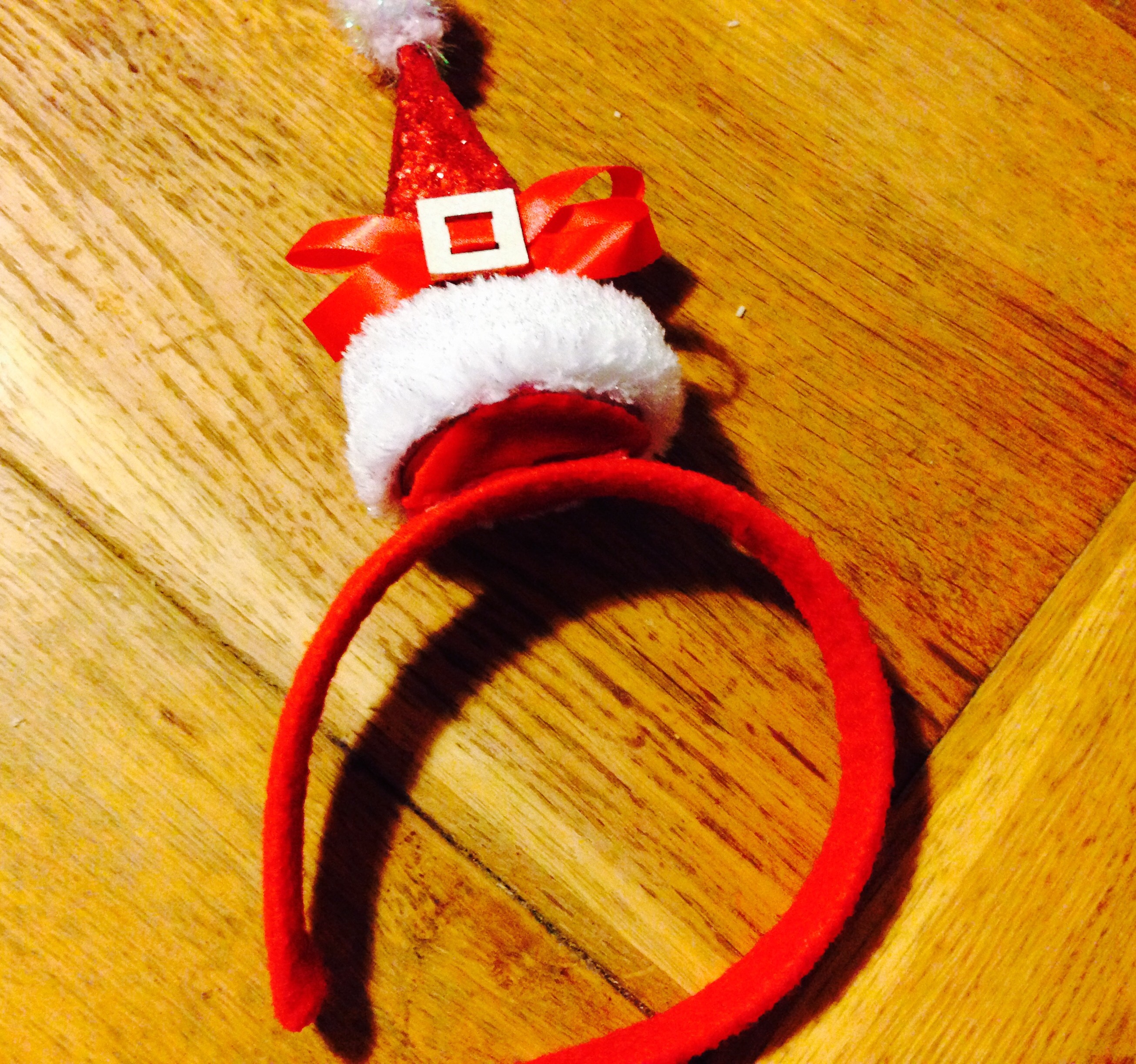 C’est vraiment un très joli serre-tête de noël… alors que moi, je suis super classique : je porte un traditionnel bonnet de père noël 🙂