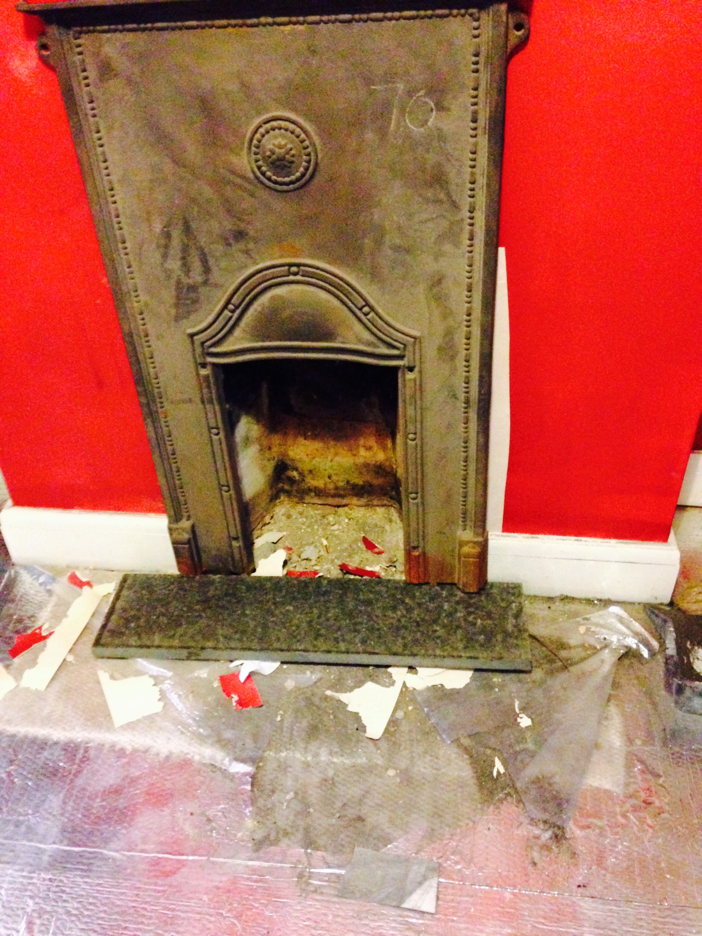 7-Et donc pour accueillir le père Noël…non, je n’ai pas un mur rouge fluo, c’est le flash qui fait son malin. En même temps, ça fait bien christmassy comme ça. Et la cheminée, je veux dire le bout autour en fonte est en cours de restauration.