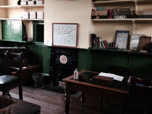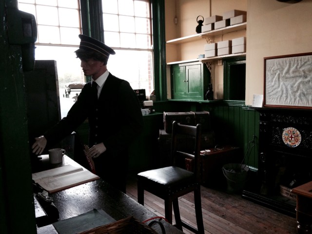 Contrairement à ce que le nom laisse croire, c’est tout petit, mais charmant, dans une gare pas complètement désaffectée, celle de Chappel. Un train asthmatique y passe de temps en temps, dans des râles d’agonie pour aller rejoindre péniblement la gare de notre village, c’est dire si c’est paumé. Toddler 5 a commencé à pousser des cris de joie dès qu’on s’est garés devant le premier train à  vapeur du musée. On s’inquiétait un peu, il a peur des vrais trains, mais à l’arrêt, ça a eu l’air de l’enthousiasmer. Il est parti comme une flèche sur les quais en hurlant:
