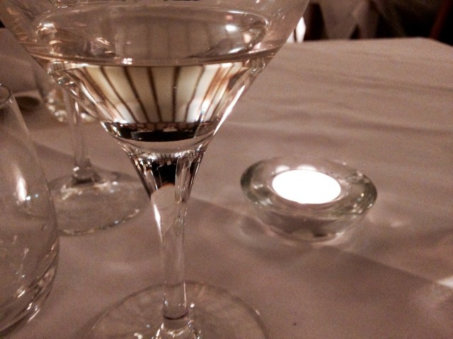 Pic: voilà, voilà… La photo est flou, mais c’est l’éclairage à la bougie, c’est traitre. La preuve, nos voisins de table ont flanqué le feu à leur menu. Le pire, c’est qu’ils ne s’en sont pas rendus compte, alors qu’il y a fait un véritable brasier dans la corbeille à pain, derrière la carafe (c’était un couple de personnes âgées, très âgées…), il a fallu que Marichéri leur disent que leur nappe allait s’embraser aussi . On a quand même été très surpris quand on a vu des flammes monter comme ça de la table à côté… D’habitude, ce genre de chose, c’est à moi que ça arrive.