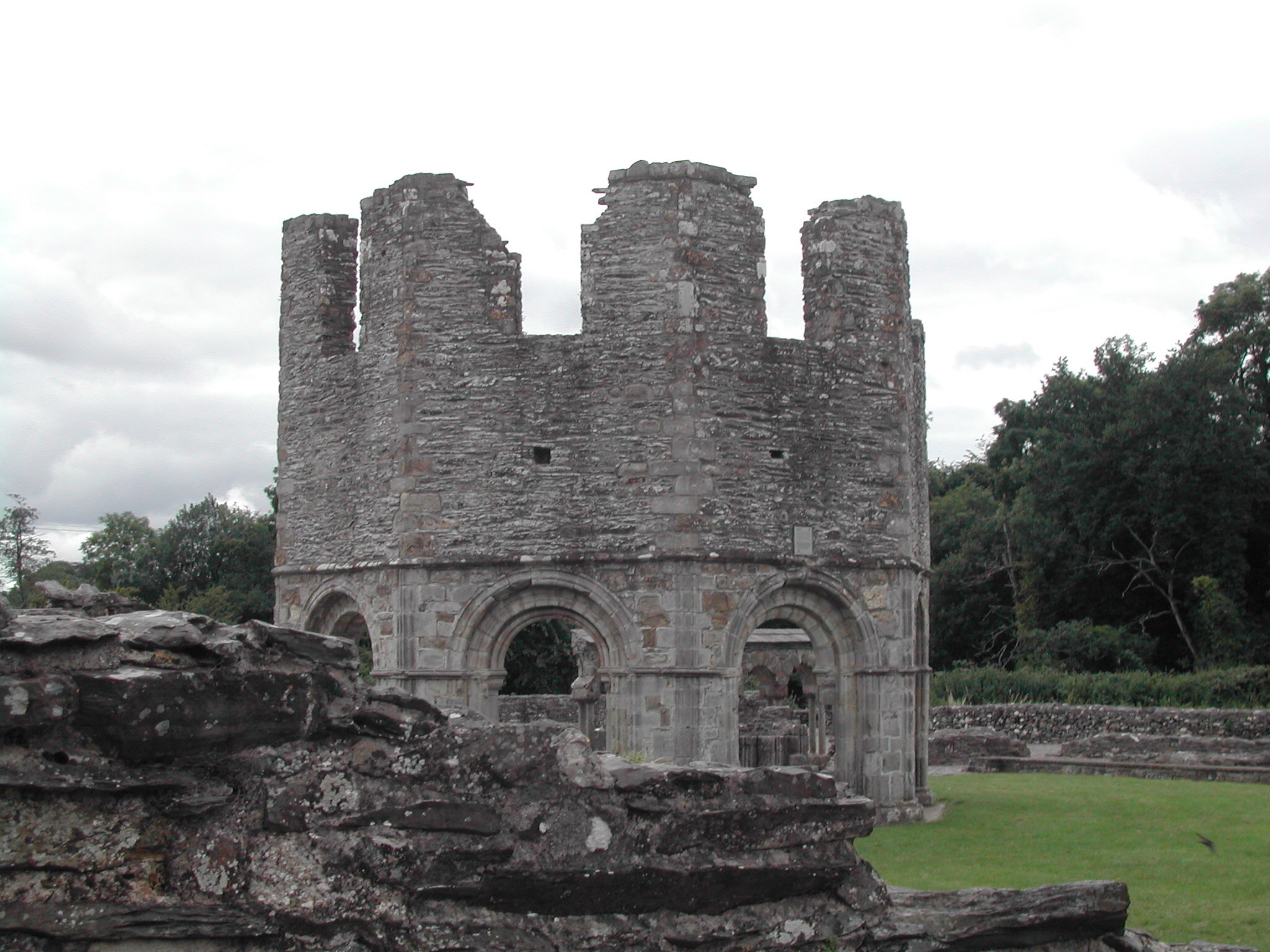 Je vous amène donc à Mellifont Abbey, dans le county Louth au nord de Dublin, tout près de Drogheda où est née PrincesseDiva ce qui n’a rien à voir avec le sujet, mais elle tient à la précision. Mellifont a été fondée en 1142 par Saint Malachy. Non seulement c’est  absolument charmant, mais l’abbaye présente une curiosité architecturale dont les locaux sont particulèrement fiers, la tour octogonale qui abritait le lavabo (ça se dit en anglais, juste pour ça), c’est à dire l’arrivée d’eau dans le cloître.