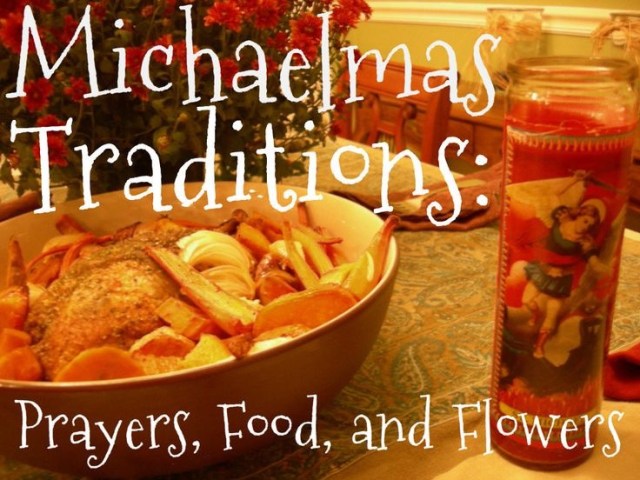 Michaelmas: c’est une fête religieuse tombée en désuète qu’on célébrait le 29 septembre ou le 10 octobre selon les régions. Je ne sais pas pourquoi… Peut être que le Yorkshire était dans un autre fuseau horaire au moyen-âge…en tout cas, c’est en l’honneur de saint Michael évidemment, mais aussi de tous les archanges. Michaelmas a longtemps été une date importante du calendrier, ça avait une signification agricole quelconque, un truc pour les moissons ou quelque chose comme ça, et pour le jardinage aussi, du style il faut planter ou couper  je sais plus quelle bestiole à Michaelmas, je ne sais pas …je ne suis pas très versée dans le végétal. Apparement, c’est le denier jour pour ramasser les mûres, après elles deviennent radioactives. C’était aussi la rentrée des universités au moyen âge et on faisait tout un tas de foires, de fêtes et autres banquets où on s’empiffraient comme des fous. Je me demande bien pourquoi les anglais ont abandonné cette tradition sympathique.