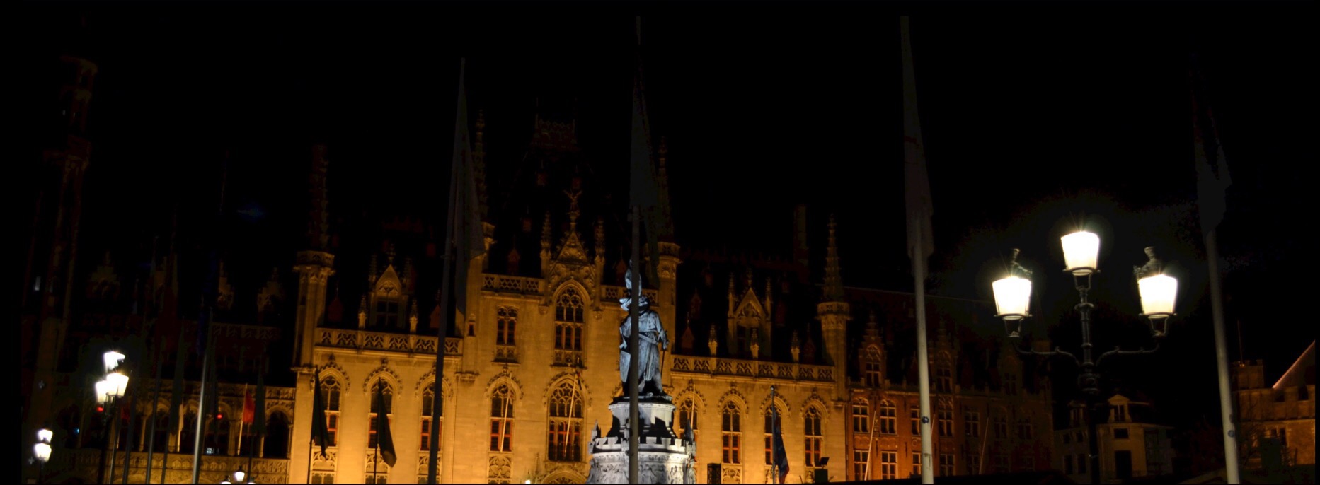 Cette semaine, Ma’ nous plonge dans la nuit. Certes ici, elle tombe tôt (la nuit, pas Ma’ qui tient debout). On a à peine le temps de rentrer de l’école, qui finit à 15 heures qu’il fait déjà sombre. C’est bien simple, on passe le chemin du retour (7 minutes à pied…ou 35, tout dépend de la bonne volonté de WizzBoy) à admirer les décorations de Noël sur les maisons puisqu’elles sont déjà allumées, vu l’obscurité ambiante. J’ai même fait une photo, discrètement, parce que je rappelle que c’est petit comme bled chez moi, il n’y a qu’une seule rue qui mène à l’école. On est donc des troupeaux de mamans et de gamins à passer par là. Je me suis déjà assez fait remarquer. Si je me mets à photographier les maisons comme ça, de façon intempestive, ça va encore faire jaser…en même temps, ces européens ça se croit tout permis. Enfin bref, j’ai tellement rusé pour ne pas me faire repérer que j’ai principalement photographié mon pouce et je n’ai vérifié qu’une fois à l’abris des regards, donc trop tard. C’est complètement raté pour ma photo nocturne locale. Mais je suis têtue. Je me suis rabattue sur une photo très jolie, parce que prise par Marichéri de Bruges. C’était pendant le marché de Noël, c’est très logique tout ça, et c’est la nuit. Voilà.