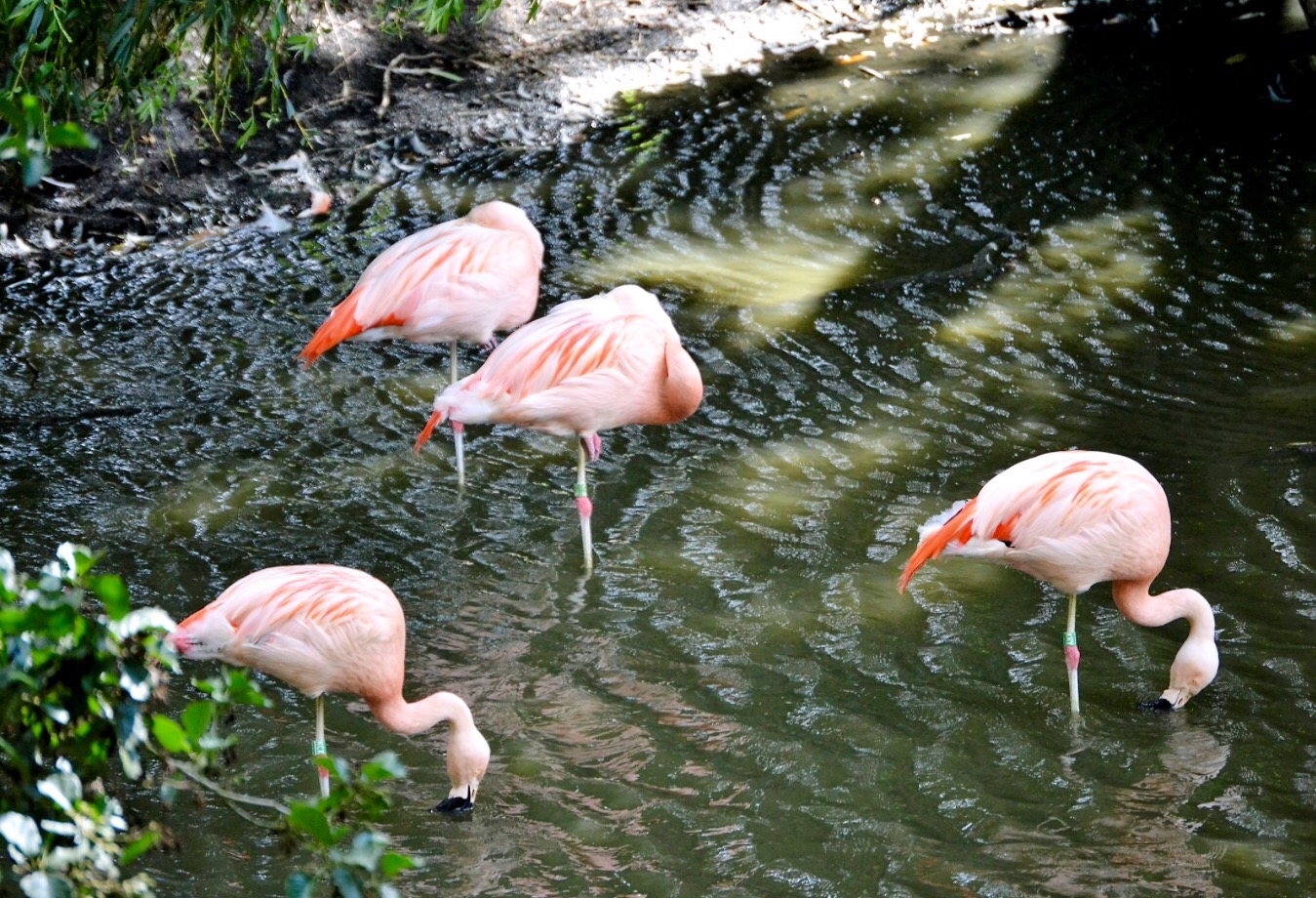 On est toujours en rose pour le rendez-vous de Bernie…quoique, c’est du rose tirant sur le orange quand même, mais j’ai bien du soleil (la photo n’est pas de cette semaine, il pleut). Voici les flamands roses du Zoo de Colchester, ou les tall pink canards selon WizzBoy.