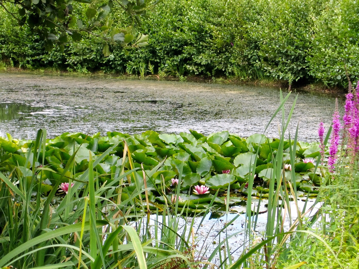 Le soleil est enfin arrivé en Angleterre pour le rendez vous de Bernie, mais je n’ai pas de rose…sauf mon pantalon. J’en suis très contente, il est rose cochon pétaradant et je cherche des chaussures vertes pour aller avec. PrincesseDiva est ravie. Je m’éloigne du sujet…bref, je vous amène à Marks Hall, l’arboretum à côté de chez nous. La photo a l’air toute verte, mais il y a bien du rose aussi, avec les fleurs de nénuphars. Quand Marichéri revisite les nymphéas..