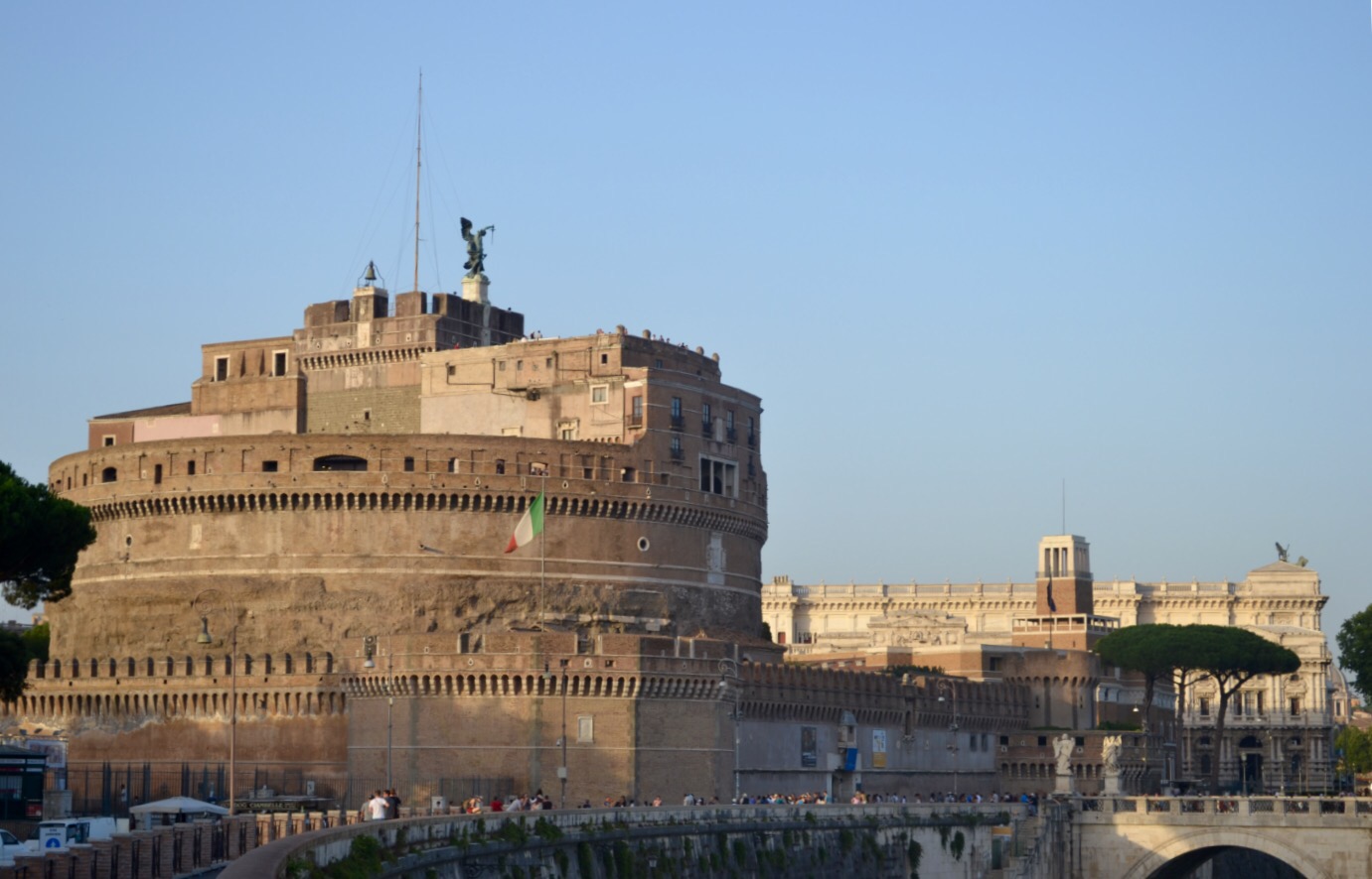 On passe au non moins célèbre château Saint-Ange qui a enthousiasmé WizzBoy parce qu’il a pris l’ange au dessus pour Spiderman. Ça a l’air mimi avec un nom comme ça, mais au départ c’est un mausolée, construit pour l’empereur Hadrien. Le château devient forteresse militaire à la chute de l’empire et de nombreux papes s’y réfugient pour éviter de se faire trucider, pas toujours avec succès, c’est très frais. Le bâtiment continue sa carrière de petit comique en étant transformé en prison dès le neuvième siècle et on continue gentiment à y agoniser. La statue, c’est évidemment l’archange Michel, qui serait apparu là pour faire coucou lors d’une épidémie de peste, qu’est-ce qu’on rit au château Saint Ange. Finalement, Spiderman, c’était une bonne idée, ça aurait été moins glauque…