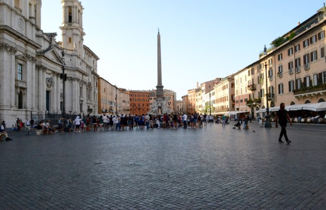 J’ai déjà dit qu’il y avait des places grandioses non? Surtout la piazza Navona. Impossible d’éviter la foule massée autour des arnaques spectacles de rues. Ni les restaurateurs hargneux à l’affût qui essaient d’agripper tous les passants. C’est dommage. Ça n’a pas gêné WizzBoy qui voulait nager dans les fontaines. On a été relativement tranquille, les restaurateurs se jetaient sur nous en anglais mais restaient interloqués par nos discussions moitié en français, moitié en anglais, moitié en charabia wizzboyien. Visiblement, ils ne savaient pas trop en quelle langue nous harceler du coup, ils passaient aux touristes suivants.