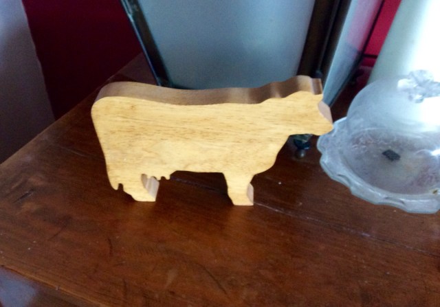 10- on commence évidemment par une vache en vrai bois d’arbre.