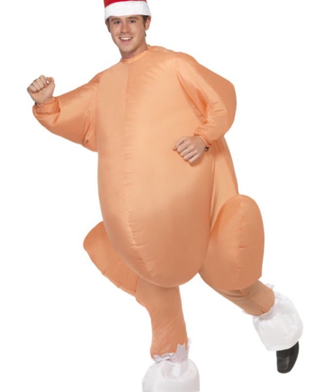 1-mais rien ne vaut le déguisement de dinde, c’est tout l’esprit de Noël. C’est gonflable aussi. Comme ça, si on tombe par hasard dans la mer du nord après s’être fortement alcoolisé à coup de Christmas pudding baignant dans du brandy, ou si on se jette carrément dans les hectolitres de brandy qui arrosent les repas traditionnels des noels anglais, et bien, on flotte. Et oui. On se moque, mais pendant que tout le monde prend des risques inconsidérés, qui c’est qui a tout prévu pour éviter une bête noyade? La dinde gonflable. On n’est jamais trop prudent, surtout en période de fêtes.