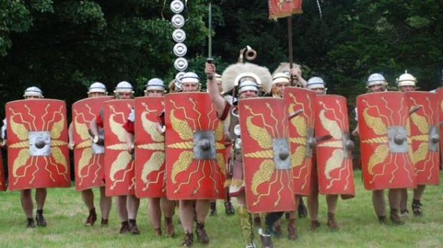 Fière de ce passé prestigieux, la ville, qui a également une forteresse normande construite sur les salles du temple romain organise des visites guidée dans les rues, pour permettre aux touristes ébahis comme aux habitants de ne pas louper la moindre petite brique romaine, le plus petit éclat de mosaïque encore la. Et c’est un centurion qui mène la visite. En jupette et casque à plume.