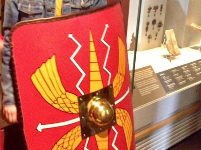 Vous allez me dire, c’est un bouclier romain sur la photo, pas anglais. Justement, puisqu’on habitait dans le borough council de Colchester, où les romains avaient installé leur première capitale britannique. Colchester, où Camulodonum en latin se vante même d’être la plus vieille ville d’Angleterre, avant Londres. Le musée de la ville permet aux enfants de se déguiser en centurion, en conducteur de char ou en locaux, les rebelles Icenis. Colchester est très fière de son passé prestigieux. Il faut dire aussi que depuis, il ne s’y passe plus grand chose…