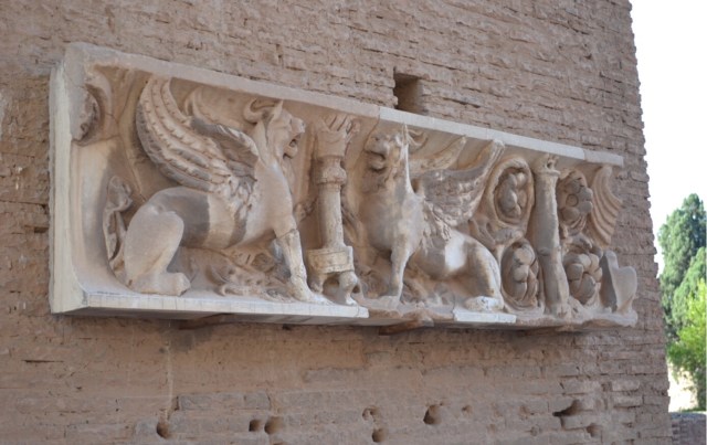 Pour cette dernière sur le thème de l’oiseau choisi par Bernie, j’aurais pu me poster dans le jardin et attendre un volatile, puisque, ô joie, il fait beau. Cela dit, non seulement je n’ai aucune patience et mais j’ai surtout deux chattes dont une très primesautière qui chasse le brin d’herbe au moindre coup de vent. Ses bondissements intempestifs attirent très peu les oiseaux, alors que pourtant, elle ne leur ferait pas de mal puisqu’elle en a peur. Bref, on repart dans les archives et à Rome. Certes, les griffons ne sont pas exactement des oiseaux, mais ils ont des ailes, je suis plus ou moins dans le thème, non?