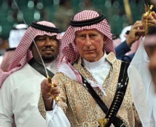 4-Charlie en Arabie saoudite. C’est parfait, il se fond très bien parmi les locaux…enfin, sauf qu’il a piqué un vieux peignoir de Camilla, on se demande pourquoi.