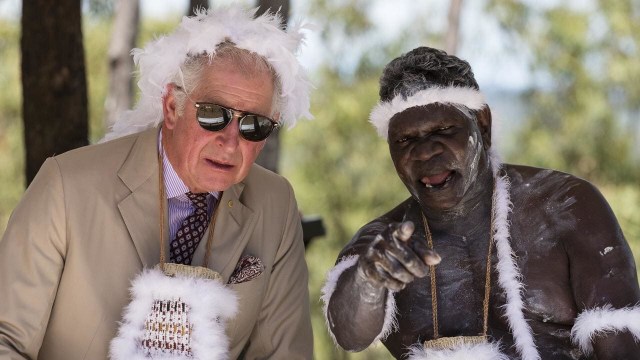 6-Charlie et son autruchon en Australie. Il n’y a pas de raison que seules les féminines chez les Royals se collent un volatile sur le crâne, Charlie fait ça très bien aussi. Ou alors, c’est une tentative trumpesque pour masquer sa calvitie? Il a même prévu le bavoir assorti.