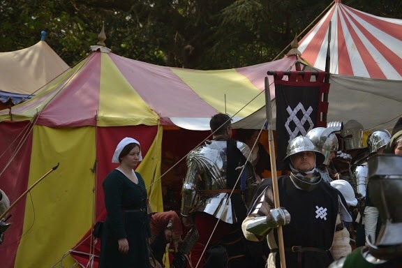 Une année , on a même pu visiter une tente. La maman faisait cuire sa tambouille dans une marmite et un nuage de fumée épaisse, et les enfant jouaient avec des jouets médiévaux. Ils nous ont fait une démonstration. On a même pu assister à l’habillage du chevalier, le papa, qui enfilait son armure. La maman a eu la très bonne idée d’expliquer à mes deux gamines émerveillées que dans la tente à coté, il y avait aussi des filles chevaliers qui allaient participer à la bataille, comme les garçons. Un débat enflammé s’en est suivi, avec des avis émanants des autres tentes: est-ce bien d’époque? Y avait-il des femmes chevaliers? Les français ont encore gagné: et Jeanne d’Arc alors? (oui, la blague sur le débat enflammé est voulue…et c’est nul, je sais).