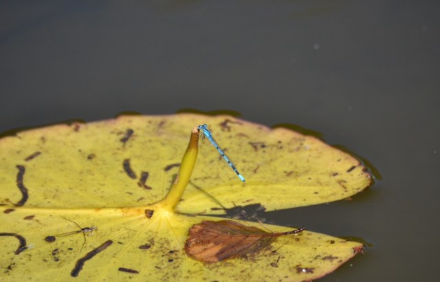 Cette photo est fantastique ! Cette toute petite libellule bleue, le jaune de la feuille, la lumière… j’aime énormément !