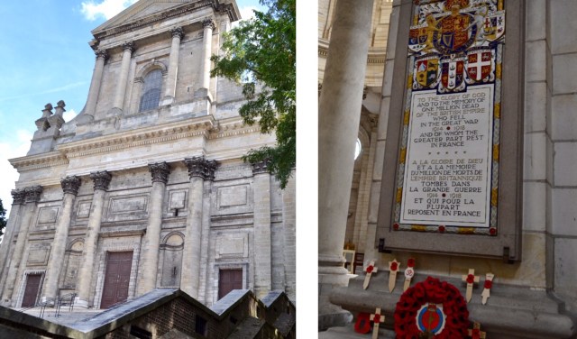 On arrive ensuite devant la cathédrale Saint Vaast (ça se prononce Saint Va) qui elle aussi a été joyeusement bombardée pendant la première guerre mondiale. On trouve partout des traces des ravages de la guerre dans le coin… On a reconnu les poppies britanniques et on a été particulièrement touché par le mémorial aux combattants du common wealth, à tous ces malheureux venus du fin fond de l’empire britannique pour finir dans les tranchées du Nord Pas de Calais.