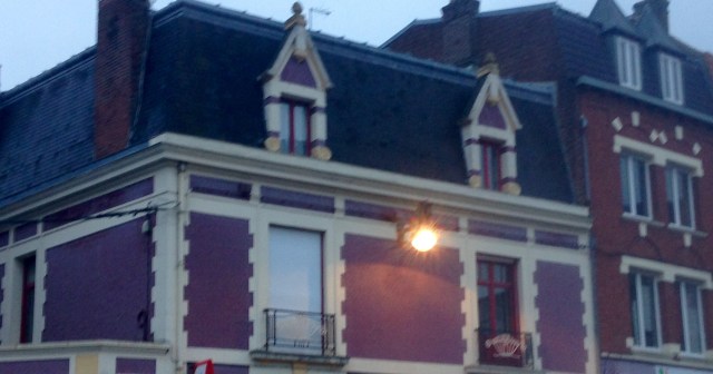 J’avoue que j’étais à court de violet pour le défi de Bernie. Jusqu’à ce que je lève le nez sur le chemin de l’école. Alors, il n’y a vraiment pas de soleil, le soir tombe et la photo est floue (ce n’est pas uniquement ma faute, pour une fois, mon téléphone commence à donner des signes de faiblesse), mais c’est bien une maison violette.