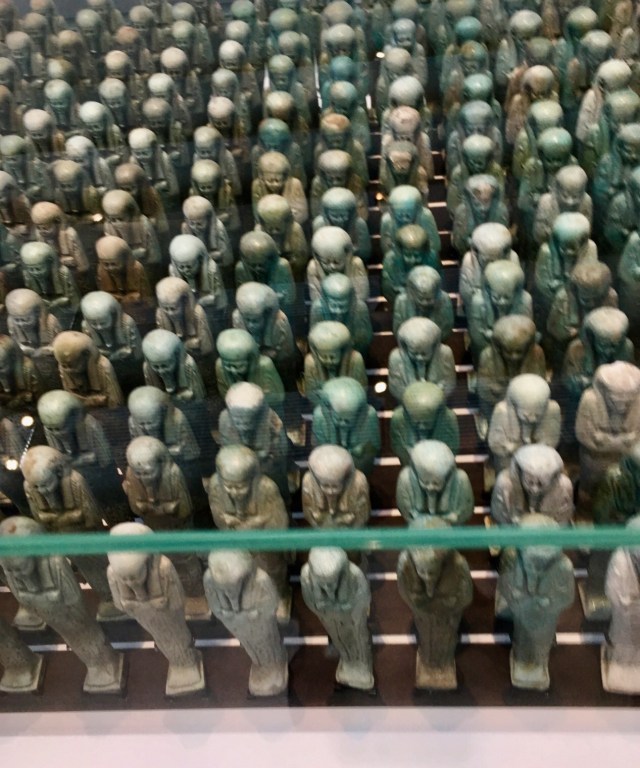 Alors là, j’ai rarement autant eu de mal à trouver une photo pour un thème proposé par Ma’…même avec ma capacité à vous sortir des explications légèrement capilotratées pour justifier mes choix. J’ai fini par me rabattre sur un choix de statuettes égyptiennes. Elles sont exposées au Louvre Lens, dans la galerie du temps et datent de -500. Il s’agit des serviteurs funéraires de Neferibreheb, mais je ne vais pas recopier toute la brochure non plus. Ces statuettes ne font que quelques centimètres de hauteur et sont toutes différentes.