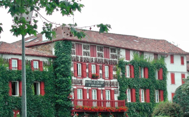 Quand j’ai vu le thème choisi par Ma, j’ai de suite pensé à notre primeur, celui qui accueille Marichéri d’un tonitruant « salut biloute » tous les vendredis au marché. On repart toujours avec des tas de fruits et légumes en plus qu’on n’a pas demandés (ni payés), visiblement, on est pote. Seulement, il est en vacances. C’est ballot. Il a donc fallu que je me plonge encore une fois dans les archives, que j’aille même voir dans les vieux dossiers, ceux qui datent de l’ancien appareil photo de Marichéri (qui me demande de préciser pour expliquer la qualité de la photo…pourtant, ça vaut largement les miennes maintenant). Je vous amène au Pays Basque. Le piment d’Espelette, c’est un légume? Il ne sert pas qu’en condiment, on en mange en purée, en conserve ou en gelée. On le fait sécher au soleil, dans des grandes guirlandes qui décorent les façades des maisons basques.