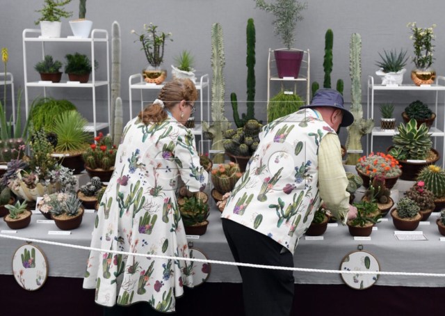 8-On enchaine par un effort de couple, avec robe et veste assorti. C’est charmant, surtout qu’ils se fondent bien avec le stand cactus. Ce sont des habitués d’ailleurs, qui gagnent régulièrement le prix du meilleur déguisement.
