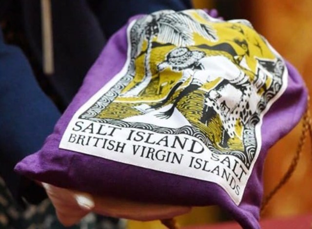 7- On continue dans le style fête de l’artisanat et des spécialités locales avec…un sac de sel. Voilà, c’est tout. Ils ne se sont pas foulés, aux îles vierge pour la venue de Lizzie. Ou alors c’est une message subtil pour lui faire comprendre qu’elle est bien sympa mais bon, elle s’incruste là…