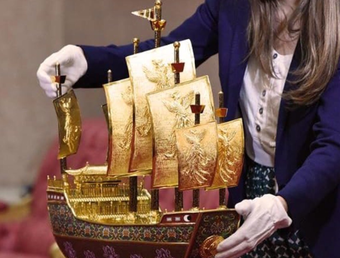 8- Et en direct de Moulinsart, paf la Licorne de Tintin et du capitaine Haddock! Est-ce que Lizzie a pensé à dévisser le mat central  et a réussi à déchiffrer le message secret pour localiser le trésor de Rackam le rouge?  Un indice, ce magnifique « vaisseau de l’amitié » lui a été offert par le président chinois, pas la peine d’aller chercher en Belgique ou à Cheverny pour trouver le trésor (désolée pour les non tintinophiles, je reconnais que ça ne doit pas être clair. Mais vous n’avez qu’à lire Tintin aussi)