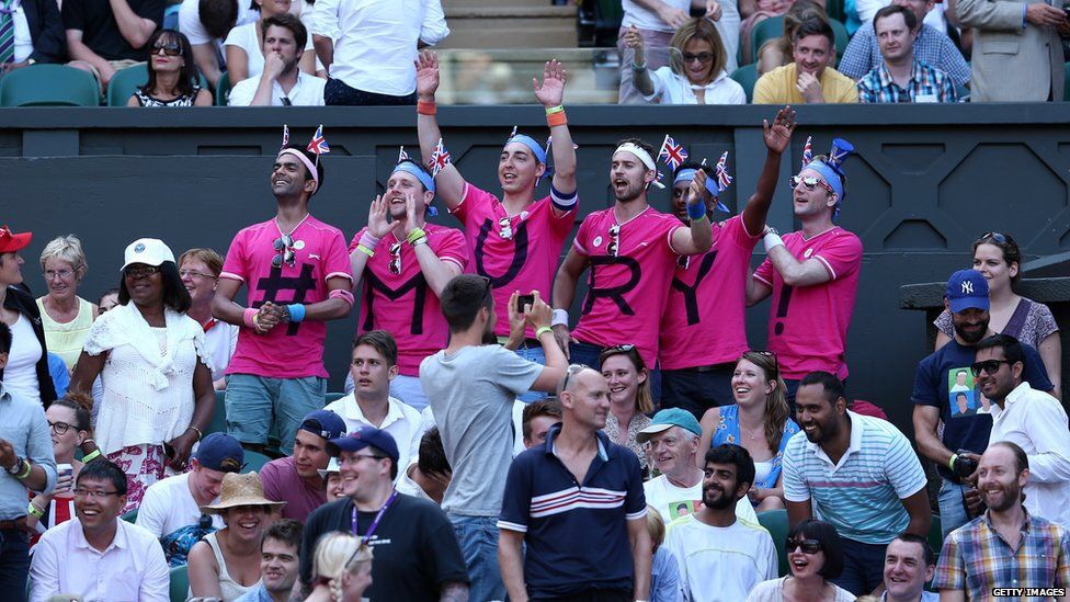 4-Depuis qu’il a gagné Wimbledon, Murray est non seulement devenu britannique, alors qu’avant il était juste écossais, mais il provoque aussi un enthousiasme délirant. Le public n’hésite pas à l’encourager par tous les moyens. C’est juste dommage de ne pas savoir épeler son nom…en plus, ces abrutis supporters fervents sont assez nombreux, si ils n’avaient pas mis un hashtag et un point d’exclamation, mais un A et un R, c’était bon. Enfin bref, allez Mury!