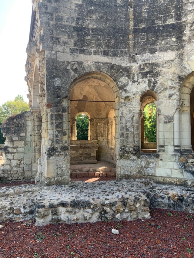 Je ne vais pas recopier toute la brochure, mais bon, il faut bien que j’explique un peu. Surtout que l’accueil est très bien, en même temps, vu que ce n’est pas pris d’assaut comme les châteaux, les employés ont pris le temps de nous parler. Franchement, niveau accueil, il n’y a pas mieux. Niveau tranquillité aussi…de là à dire que Ronsard n’intéresse pas les tour operators…c’est une chance, ça évite de dénaturer le site. Le prieuré dont on admire les ruines aujourd’hui, a été fondé en 1092, mais il y avait un oratoire sur le site au septième siècle et une occupation monacale dès l’an mille. Le prieuré reste actif jusqu’en 1742 et accueille les pèlerins en route vers Saint Jacques de Compostelle. Bérenger de Tours s’y installe en 1079, Henry II Plantagenet (le papa de Richard cœur de lion) y exile un évêque anglais récalcitrant en 1187, Catherine de Médicis et son fifils Charles IX viennent y faire coucou à Ronsard, bref, c’est le prieuré qui voit passer du monde.