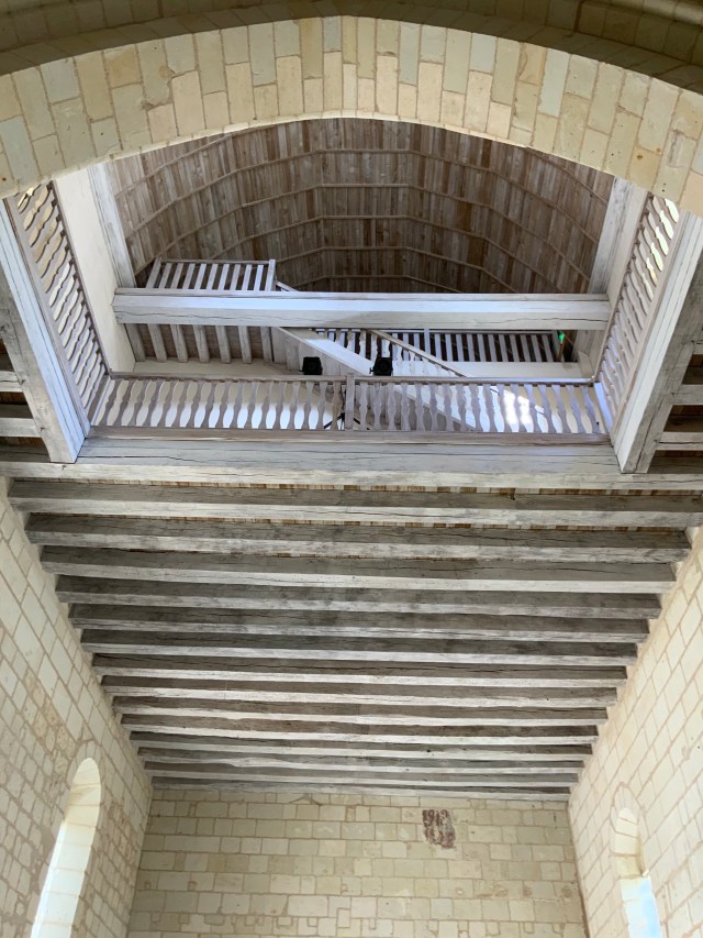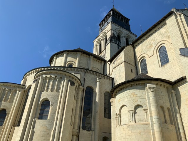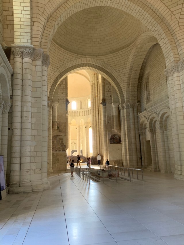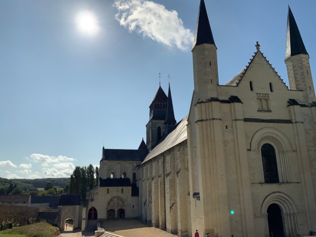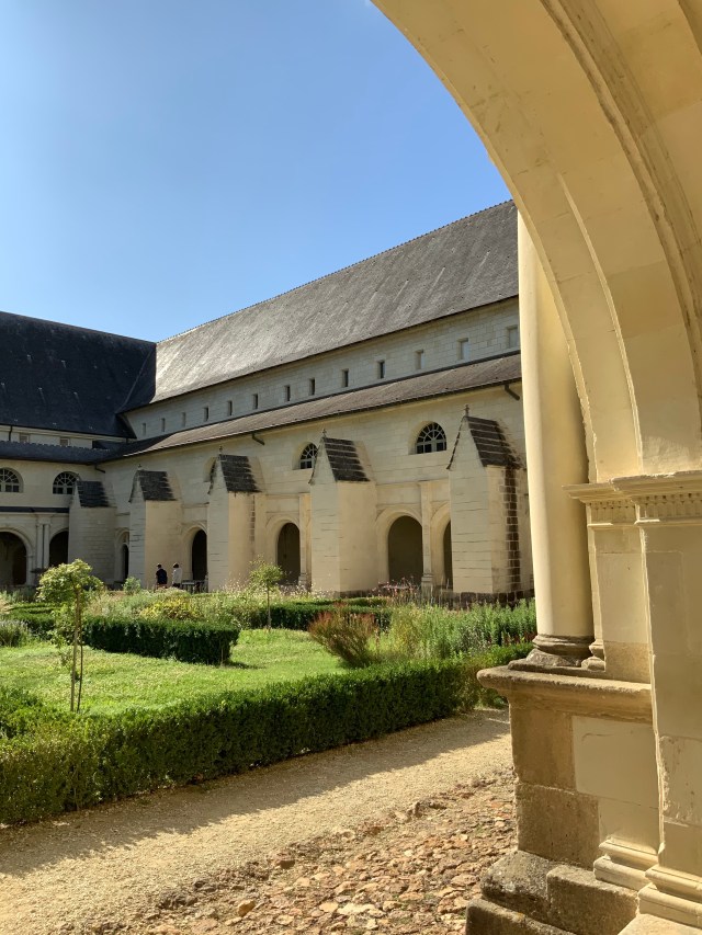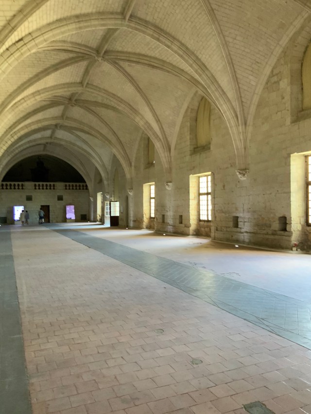 L’église abbatiale est magnifique et grandiose, il faut bien ça pour une nécropole royale. Elle date de 1119 et fait carrément 90 mètres de long. Elle devient très mode à partir de 1154, quand Henry Plantagenêt, roi d’Angleterre et local, et donc sa femme Alienor d’Aquitaine, mon idole, viennent y faire un tour. Comme quoi, Kate et Meghan n’on rien inventé, déjà au moyen âge, on suivait les « Royales ». En tout cas, Fontevraud paît tellement à Henry et Alienor qu’ils y laissent en pension leurs deux plus jeunes gamins, Jeanne et le futur Jean Sans Terre…ou alors, ils avaient tellement d’enfants qu’ils ne se sont pas rendus comptes qu’ils en avaient égaré quelques uns, c’est une possibilité. Je sens que je casse l’ambiance. Un peu de sérieux, reprenons.