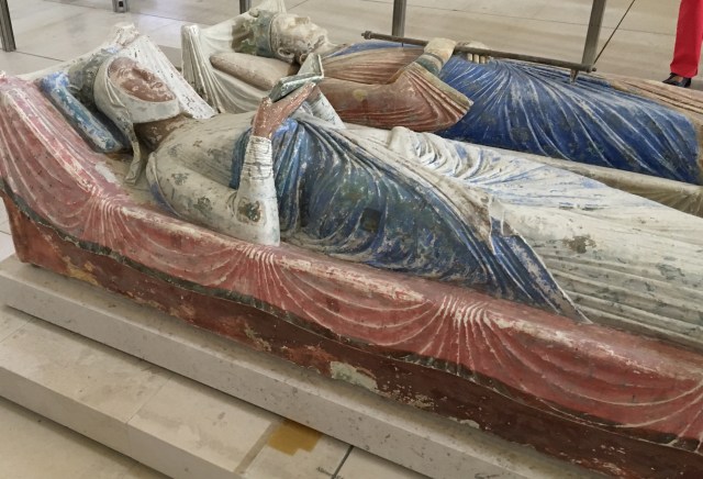 Quand Henry meurt subitement à Chinon en 1189, on est bien embêté. Rien n’était prévu, et voilà qu’on se retrouve avec un cadavre royal sur les bras, en plus, avec la chaleur exceptionnelle de cet été là, franchement, c’est pas un cadeau. Fontevraud a le mérite d’être juste à côté, allez hop, on y case Henry et puis c’est tout. Si ça ne lui plait pas, il avait qu’à mourir ailleurs aussi. Bref, c’est grâce à lui et à la précipitation de son entourage à se débarrasser au plus vite de sa dépouille qu’on peut admirer de sublimes gisants à Fontevraud. Il y a donc Henry, qui est rejoint en 1199 par son fils Richard Cœur de lion. Alienor prend sa retraite à Fontevraud en 1200 et y meurt en 1204. Je ne suis bien sûr pas du tout chauvine, mais il faut reconnaître que son gisant est le plus beau non? Il y a également celui d’Isabelle (femme de Jean), mais ce ne sont pas les seuls Plantagenêt enterrés à Fontevraud, on y trouve également Jeanne et ses fils Richard et Raymond.