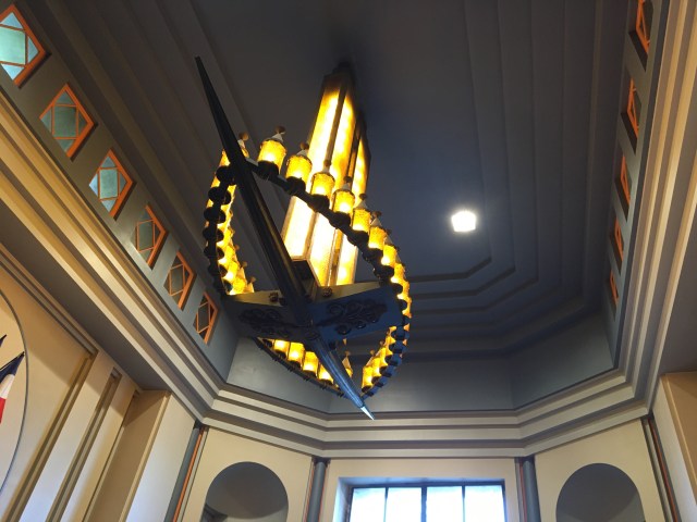 Je voulais changer un peu de noël, pour ne pas faire doublon avec le Xmas addict mais je n’avais aucune idée pour le thème choisi par Ma’ cette semaine. Et puis, en parents martyrs dévoués, on est allé à l’hôtel de la ville où nos enfants vont à l’école: MangaGirl ayant des velléités artistiques, elle participait au concert de noël cet après midi. L’acoustique de la salle de réception municipale est catastrophique, mais le lustre est original, art déco comme tout le bâtiment et il est en plein dans le thème.