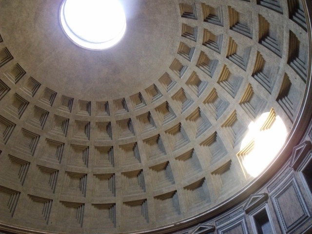 Je vous amène donc à Rome, au Panthéon, où un rayon de lumière semble tomber du ciel pour mettre en valeur la voute.
