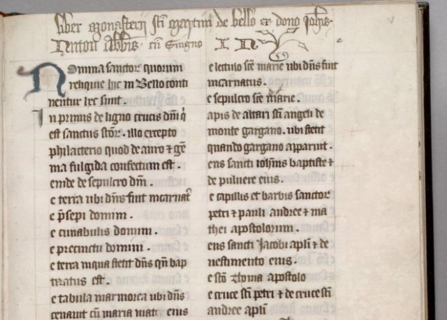 J’ai déjà parlé du charmant village de Battle et de sa magnifique abbaye, puisqu’on l’a visitée. C’est à dire que la bataille de Hastings n’a absolument pas eu lieu à Hastings, mais plus loin en rase campagne. On a quant même plus de liberté de mouvement en plein champs pour étriper tout ce qui passe à coup de moulinets ravageurs, que coincé dans des ruelles étroites. Sans compter qu’on y gagne aussi en nettoyage après… Tout guilleret après son carnage sa victoire, Guillaume a fait construire une abbaye pile à côté du champ de bataille, et un village auquel on a originalement donné le nom de Battle, a poussé autour. Jusque là, ça va. L’abbaye de Guillaume se visite, sauf une partie qui a très logiquement été convertie en collège privé so british, ça se tient. Mais qu’est-ce que le père noël vient faire là dedans? Et bien le petit Guillaume aimait beaucoup son abbaye, il lui a fait plein de cadeaux. Et qu’est-ce qu’on offrait à une abbaye au moyen âge, alors qu’il n’y avait même pas de wifi? Des reliques de saints. Guillaume aimant bien les listes (il a commandé le domesday book qui recense toutes les terres de son royaume, et surtout toutes les taxes associées, faut pas rigoler non plus), on n’allait pas ranger ses cadeaux dans un grenier, en fouilli et puis ça ira bien comme ça. Les moines ont tout bien noté dans un magnifique inventaire superbement calligraphié pour l’époque, c’est à dire totalement illisible pour la nôtre. Il a fallu attendre des siècles pour qu’un petit curieux se penche à nouveau dessus et le déchiffre. Et là, ça devient festif.