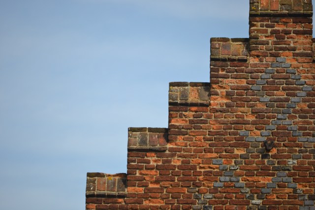 Pour le thème proposé cette semaine par Ma’, j’ai hésité à vous montrer le carrelage chez nous, mais finalement, on repart en Angleterre. Les manoirs Tudors sont souvent décorés de motifs géométriques en briquettes plus foncées. Layer Marney, près de Colchester où on vivait, ne fait pas exception. Le manoir qui s’enorgueillit d’avoir la plus haute tour Tudor du pays, date de 1520. Henry VIII, qui aimait bien squatter gratis est venu y faire un tour. Layer Marney se visite toujours et c’est charmant.