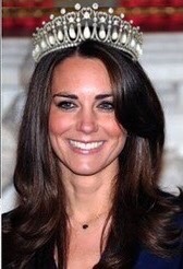 4-Dans le style horreur tiare, cette pauvre Kate participe aussi. Alors soit elle a vraiment une petite tête (ce n’est pas une allusion à ses capacités intellectuelles, je ne suis pas comme ça…de toute façon, ça n’est pas le propos) soit on a voulu lui faire une blague… Je suis formelle, Maricheri et moi avons reçu une espèce de corbeille à fruits exactement comme ça, mais retournée, en cadeau de mariage. Si ça peut aider Kate, nous on l’a volontairement malencontreusement égaré dans un déménagement…ou alors Kate s’est bêtement retrouvée sans rien sur le crâne pour un dîner officiel. Si ça se trouve, elle avait oublié de se laver les cheveux en plus. Du coup, elle a habillement improvisé avec la décoration de table.