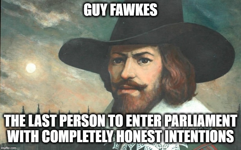 Déjà, les 13 conspirateurs étaient connus des services de police et pas en bien. On ne peut pas dire que James était particulièrement populaire, au contraire, ni auprès des catholiques ni des protestants ni qui que ce soit (peut-être son chien, et encore…). Il y avait donc pas de mal de gens qui râlaient plus ou moins ouvertement et étaient surveillés. On n’avait peut-être pas les mêmes moyens technologiques à l’époque, pas possible d’écouter leur téléphone ou de les suivre par satellite, mais il y a peu de chance que des types surveillés aient pu pénétrer comme ça, innocemment, dans Westminster (un tout petit peu gardé aussi en temps normal) avec 36 barils de poudre sous le bras, coucou, on est plombier, c’est pour la fuite dans les toilettes du premier (Premier, James Premier). Ensuite, on est certain aujourd’hui que la fameuse lettre à Lord Monteagle est un faux et qu’elle a été écrite par des officiers royaux. C’est embêtant. La lettre est anonyme, aucun des conspirateurs qui ont pourtant été torturés gentiment, n’en avait connaissance et elle est aussi particulièrement vague. Attention, il va y avoir une explosion à Westminster. Mais les officiers royaux sont de petits malins, ils savent lire entre les lignes et à partir de rien, ils déduisent tous les détails du complot, les revendications, les noms des participants et tout. C’est très fort. Mieux que dans une série télé. Bref Guy Fawkes et ses copains se sont fait avoir. Ensuite, c’est plus flou. Certains pensent qu’il y a bien eu un complot de catholiques, mais qui étaient surveillés depuis le début : On les a laissé faire (mais bien sûr que vous êtes les plombiers, on peut vous aider à porter vos barils votre matériel ?) et arrêter au moment où ça aurait le plus d’impact pour faire monter la popularité du roi. D’autres pensent au contraire que tout a été manigancé dès le début par James et ses potes, et qu’ils ont même fourni les fameux barils. Franchement, Guy Fawkes n’était pas très futé.