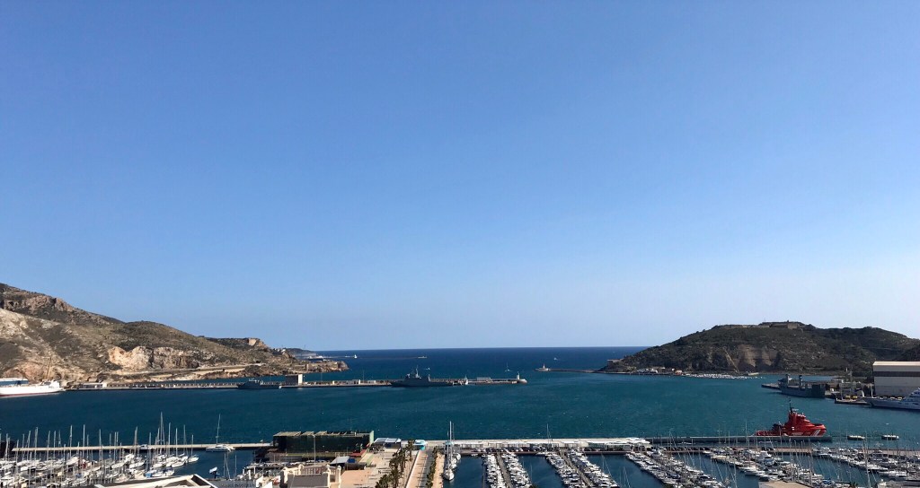 On est toujours en plein outre mer pour le défi de Bernie. On parle de la couleur bien sûr, mais j’ai décidé d’une interprétation maritime, pour coller doublement au thème. Après l’Atlantique, la Manche, et le Pacifique, voilà la Méditerranée, à Cartagena, en Espagne. La couleur y est…