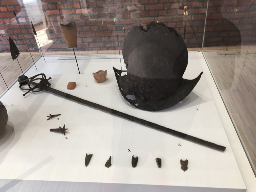 La ville a prospéré au moyen âge, même si les flamands ont anticipé en tentant de la brûler en 1303. L’évêché de Thérouanne est malheureusement pour lui, stratégique et donc Charles Quint décide de s’en emparer. Forcément, ça a laissé des traces de batailles…Wizzboy est tombé en admiration béate devant des boulets de canon en grès et une vraie épée, alors que PrincesseChipie a préféré le casque, qui lui a rappelé un chapeau de schtroumpf. De là à traiter Charles Quint de grand schtroumpf…